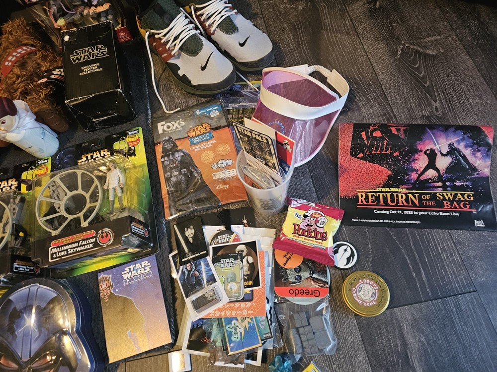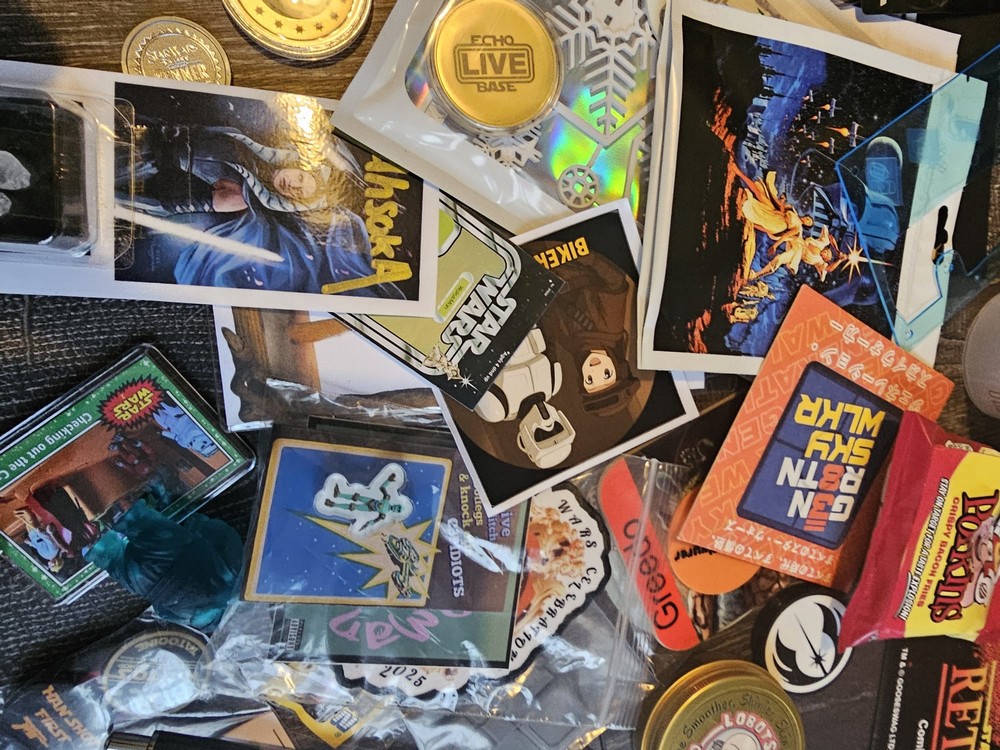 There was a real energy and joy to the day. It felt like everyone was having a great time. Come 10.30am I headed out of the main show room to the entrance where it was time for the SWAG trade/meet up. I’d done this once before and it was great fun and wanted to do it again. I’d tried to get a bit creative with an idea and went for something that I hoped would get a laugh. I made 50 Jawa plant pots that were up for trade. All I needed was some black paint and two yellow eyes and we were away. The detail and ideas that people come up with for SWAG never ceases to amaze me. A few of my favourite were Mini Moc Pez’s, a General Madine Sexy Club KFC pin badge, TIE-Fighter Christmas decorations and Star Wars Poker playing hat. In all, I came away with 32 hand-made and one-of-a-kind items from the trade up and it lasted half an hour. It was wonderful. Assuming the next show is April 2026, getting thinking and get creative for the next one.
